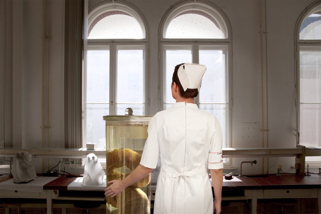 The solo show ‘A Voyage To Cythera’ by artist Aya Ben Ron, is a radical intervention in the collection of the Berlin Medical Historical Museum: framed by a sound installation and followed with texts and poems, several large-sized sculptures and video installations are temporarily integrated into the permanent collection of the museum. With this intervention the artist questions the experiences of hospital patients and, more specifically, grapples with the status and dignity of the specimens exhibited at the museum.