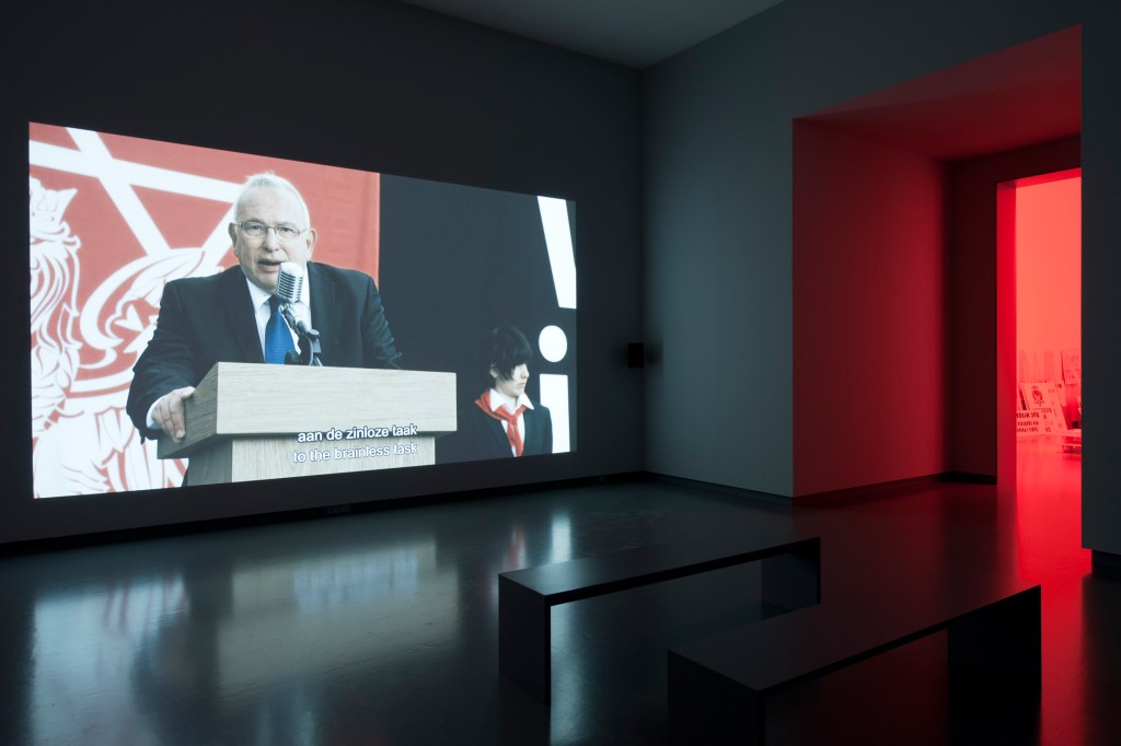 The exhibition … and Europe will be stunned was shown in the first time in Polish national pavilion at the 54th International Art Exhibition in Venice. The films revolve around the activities of the Jewish Renaissance Movement in Poland (JRMiP): a political group calling for the return of Jews to the land of their forefathers. The films are overflowing with the narratives of the Israeli settlement movement, Zionist dreams, anti-Semitism, the Holocaust and the Palestinian right of return. Apart from realising the film trilogy, the artist has established the foundations of a new political movement.